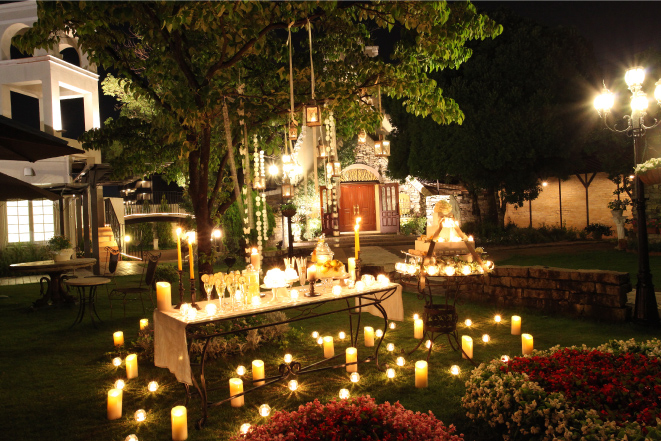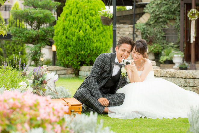 会場とひと続きの緑溢れる専用ガーデンは、一歩足を踏み入れたとたんに、